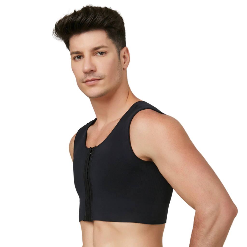 Este modelo é indicado para o pós-cirúrgico de ginecomastia, lipo peitoral, demais procedimentos estéticos na região do peito, tórax e também para uso diário.