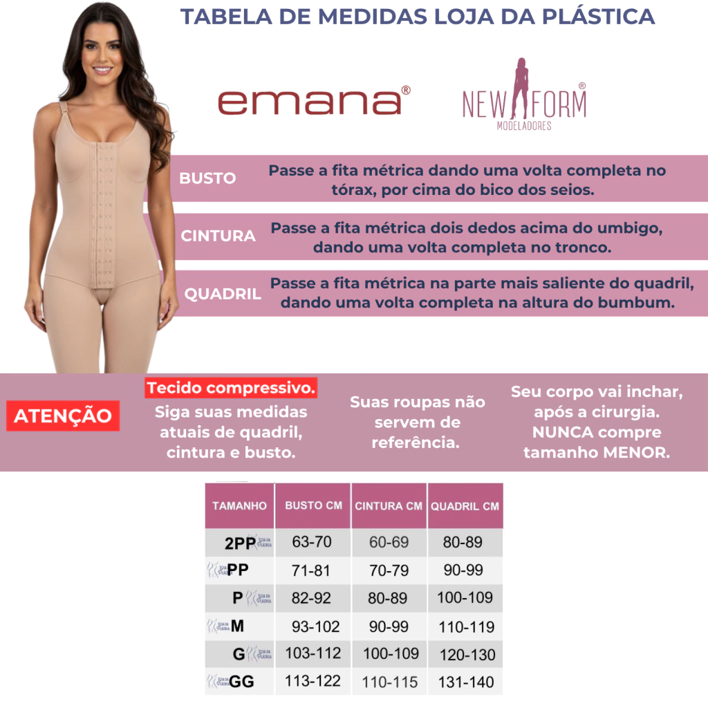 Se você busca recuperação segura, confortável e com melhor resultado estético após cirurgias plásticas, o Macaquinho Longo Pós-Cirúrgico Emana New Form é a escolha ideal.