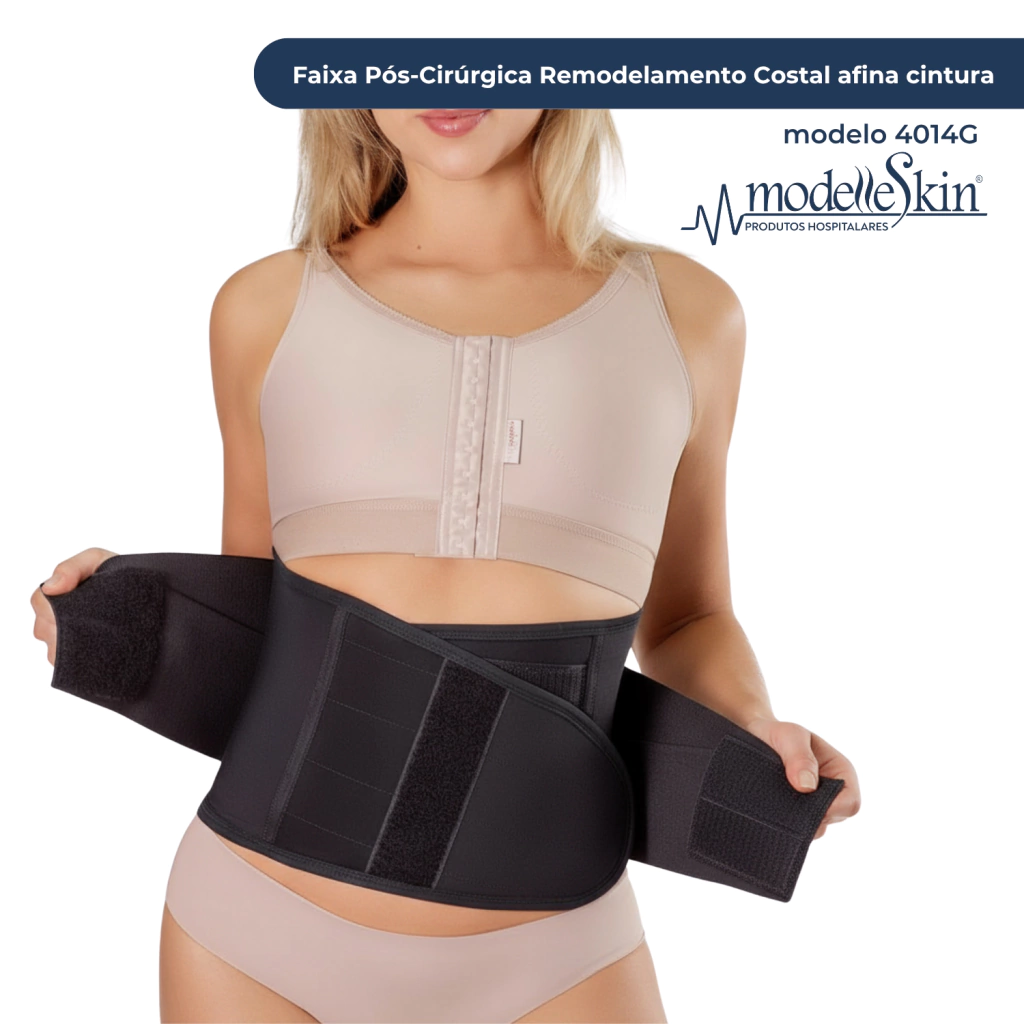 - Modela e Define a Cintura: Além do uso médico, a faixa também é indicada para uso estético, auxiliando no afinamento da cintura, promovendo remodelação da região e melhorando o contorno corporal.