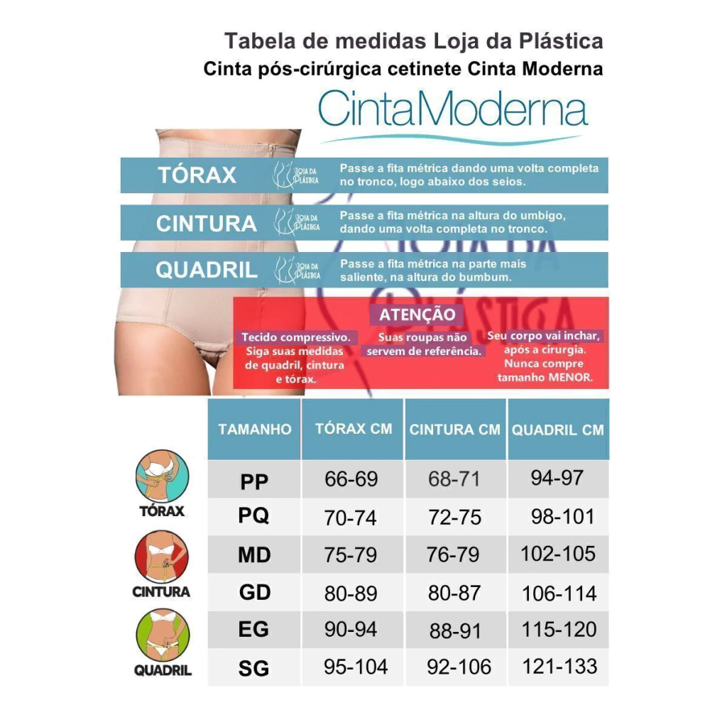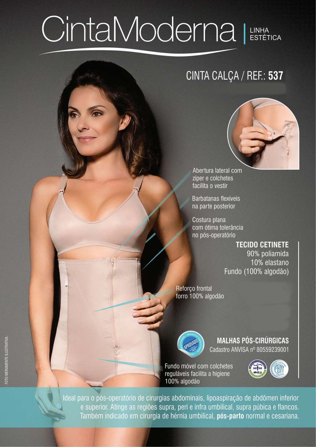 A cinta cirúrgica e pós-parto alta estatura da Cinta Moderna é ideal para quem passou por abdominoplastia, lipoaspiração, cesárea ou outros procedimentos cirúrgicos na região abdominal. Também é perfeita para o pós-parto, oferecendo sustentação adequada e auxiliando no retorno do corpo ao seu formato natural.