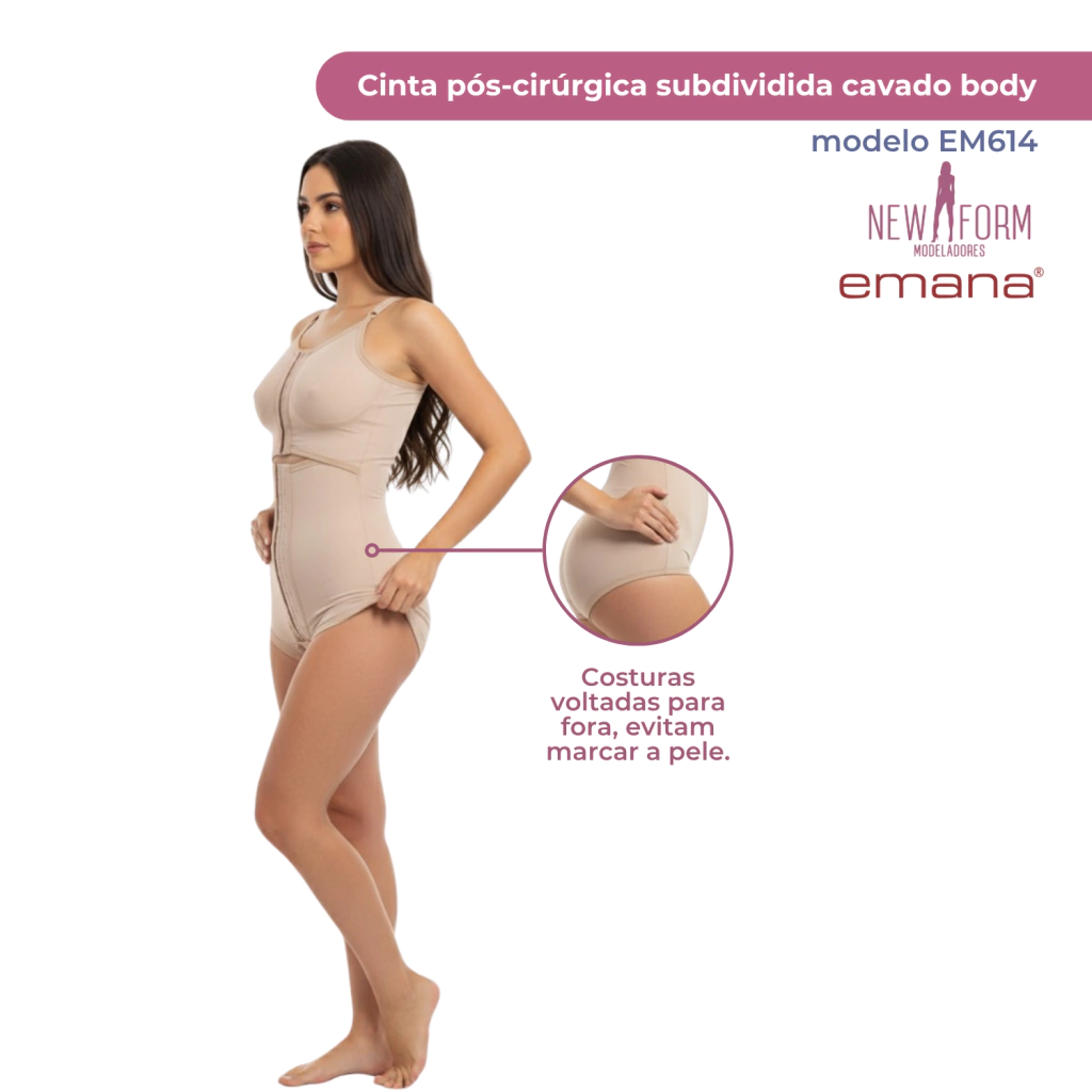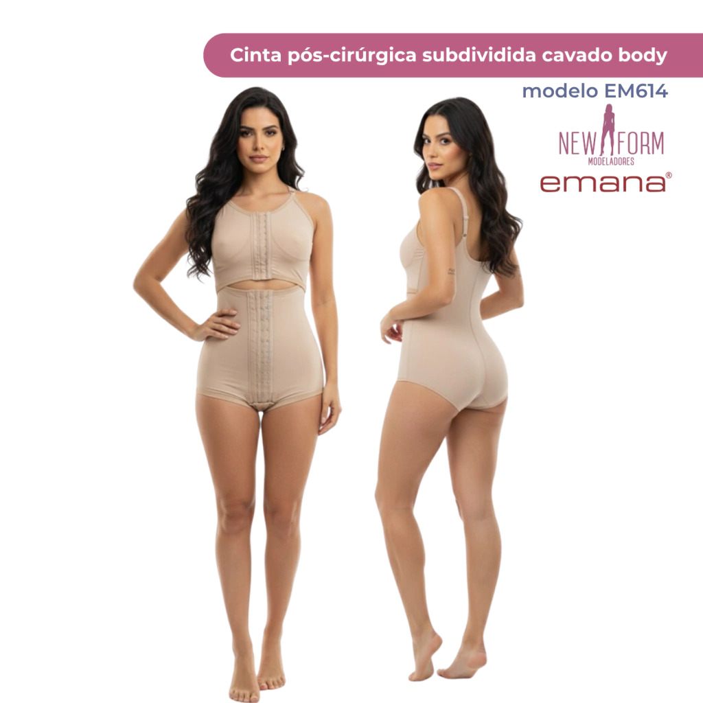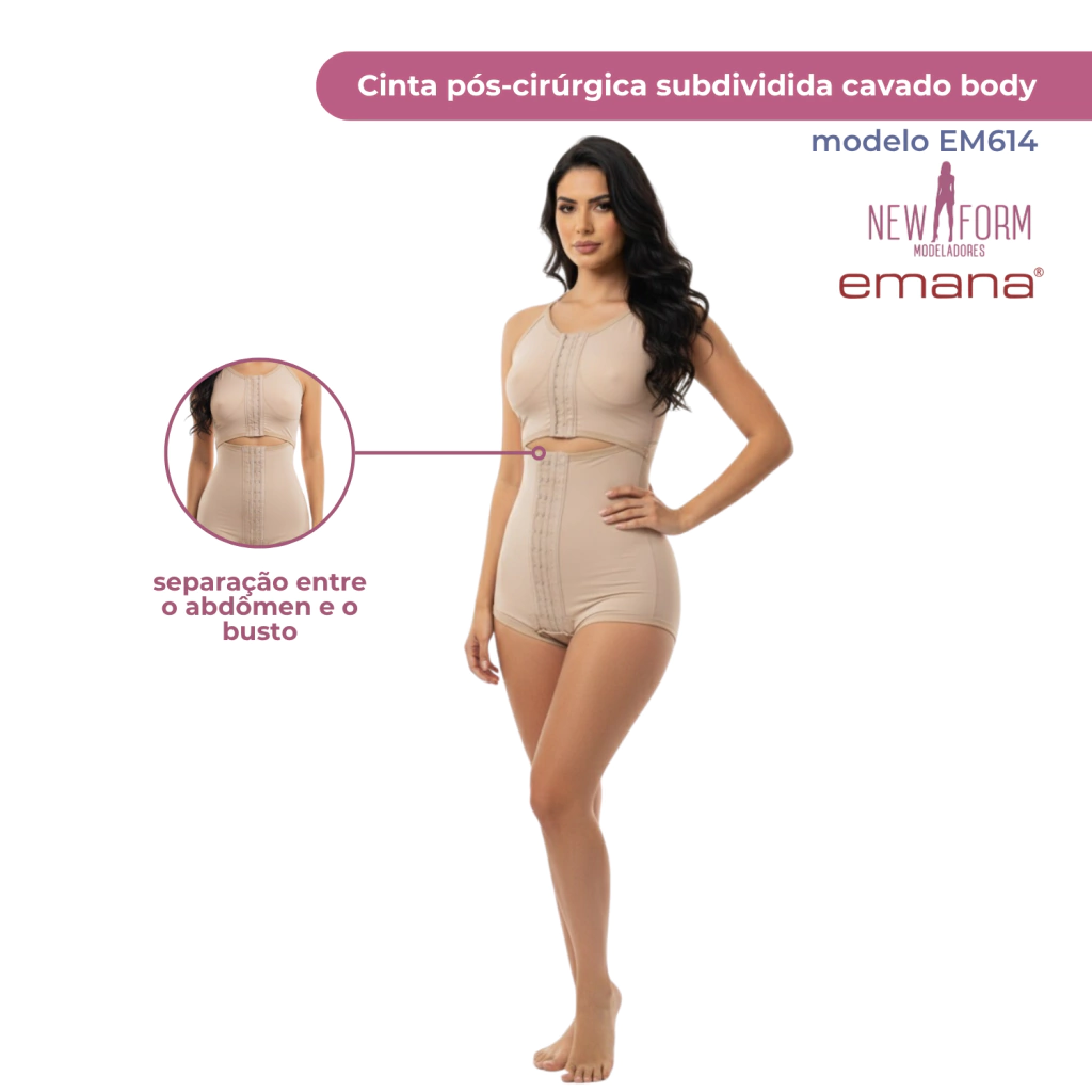 Cinta Pós-Cirúrgica Subdividida Cavada Body Emana New Form – modelo EM614 – Média compressão