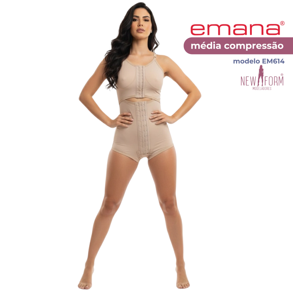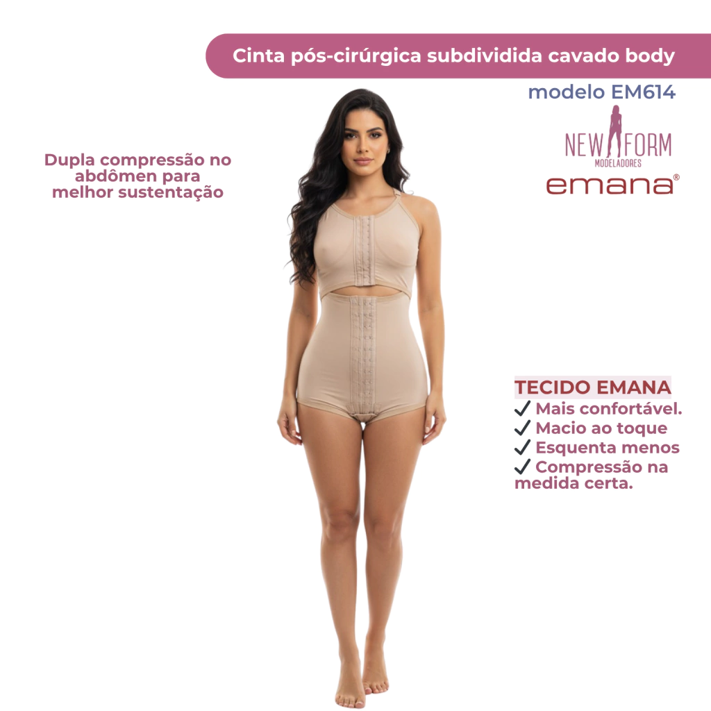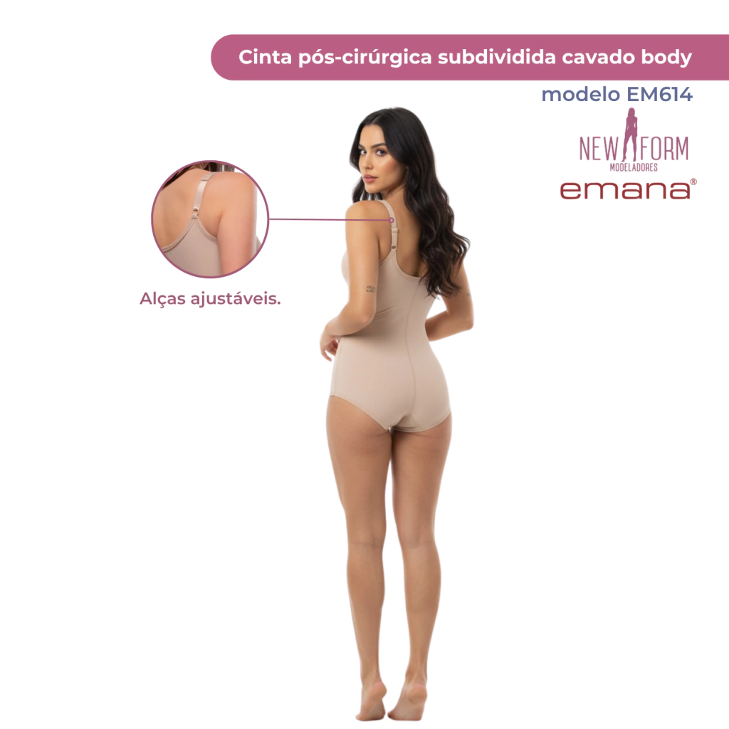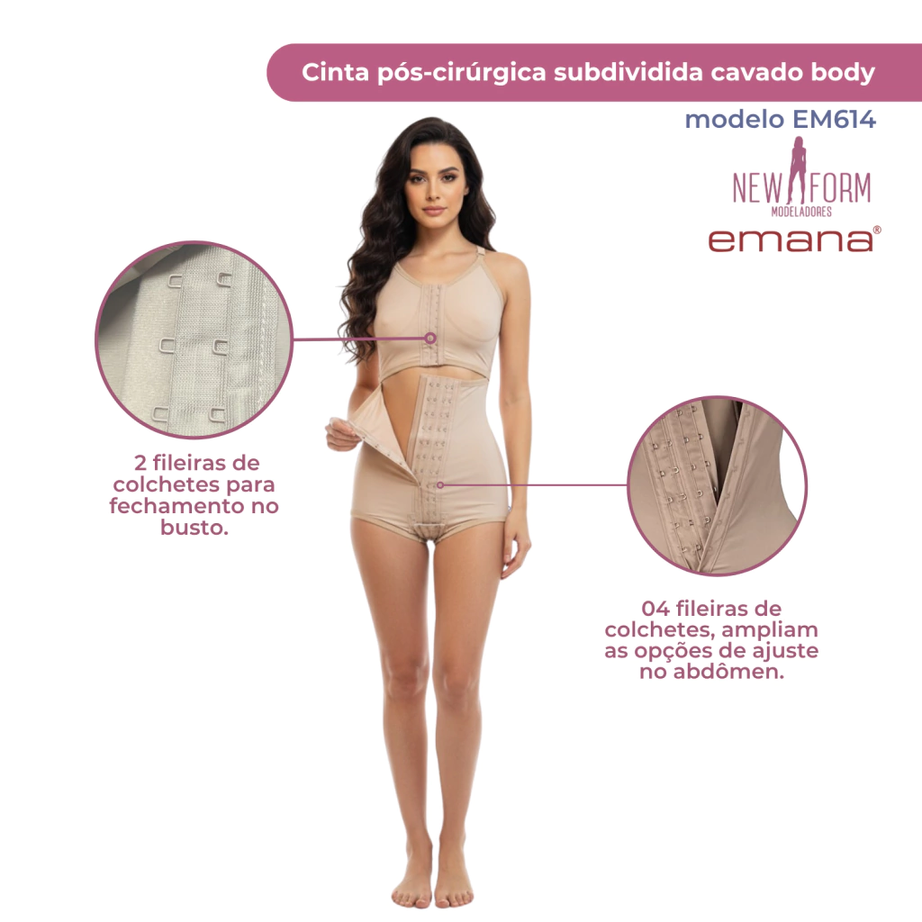 Cinta Pós-Cirúrgica Subdividida Cavada Body Emana New Form – modelo EM614 – Média compressão