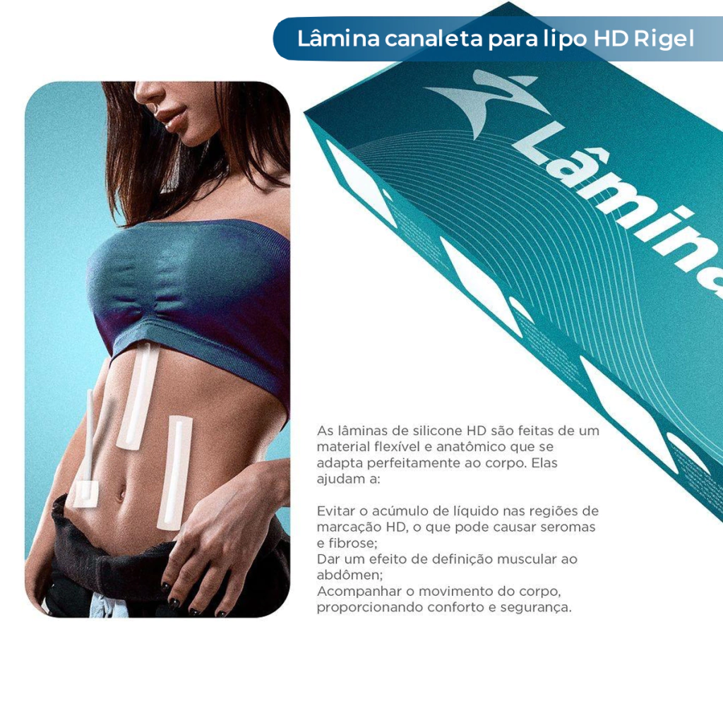 As lâminas para lipo HD Rigel são fabricadas em silicone, o que garante flexibilidade e conforto. Cada lâmina possui 40 centímetros de comprimento e pode ser cortada para otimização do uso.