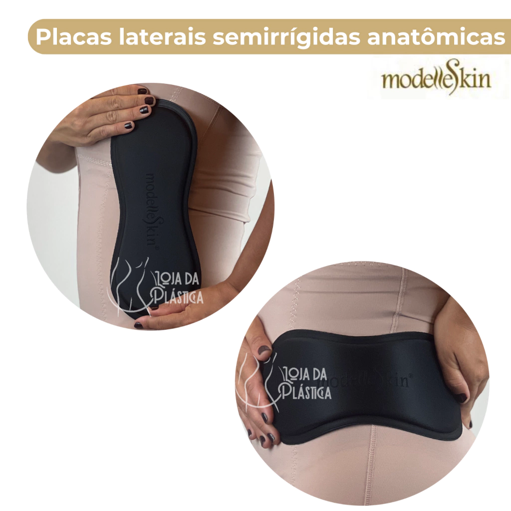 Para o seu conforto, as talas pós-cirúrgicas de contenção laterais Premium Modelle Skin, vendidas pela Loja da Plástica, possuem bordas finas e laterais com densidade mais suave para adaptar melhor aos contornos do corpo. Já o centro da placa é mais firme, proporcionando mais compressão.