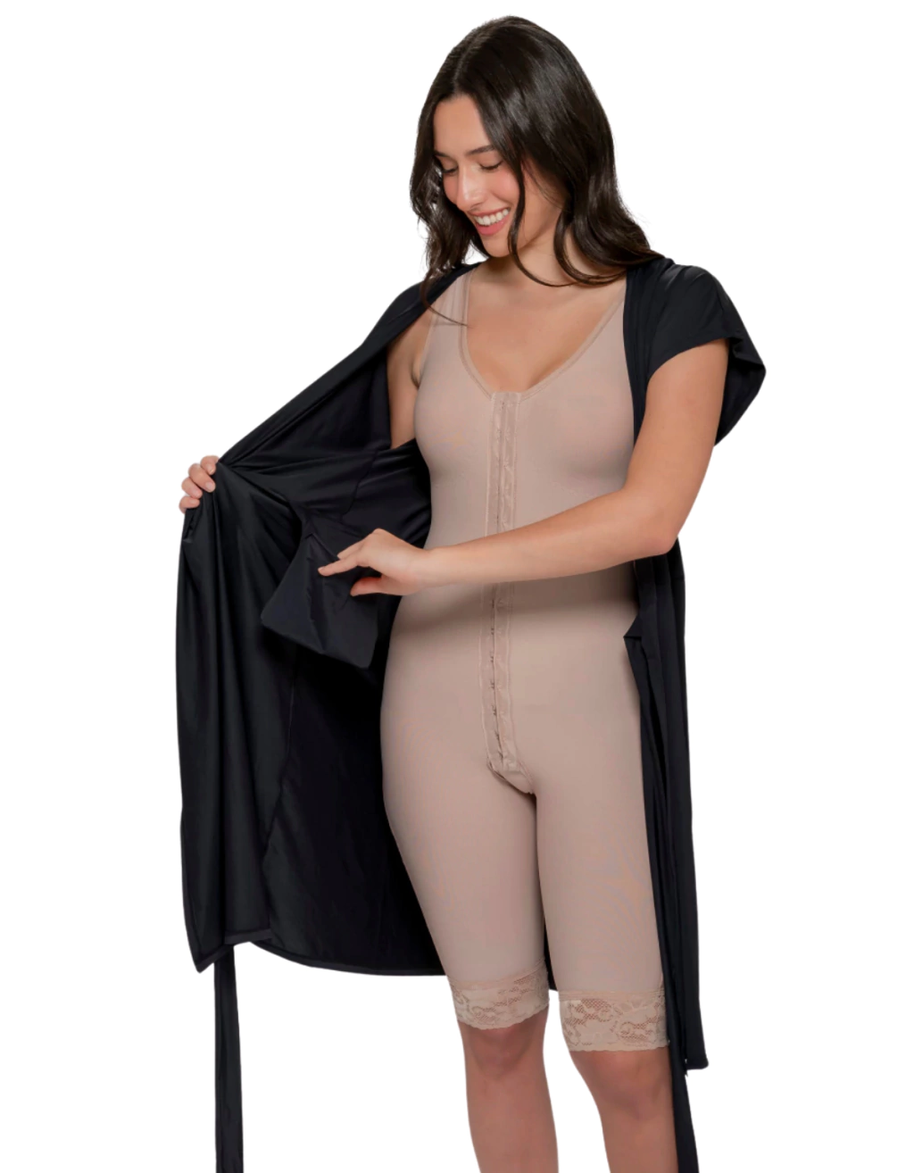 - Modelagem ajustável – Fita de amarração que se adapta ao corpo, sem apertar.